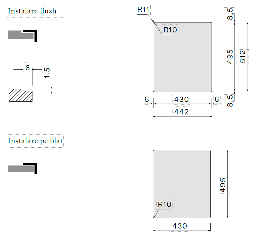 | Montaj | Flush / Pe blat |