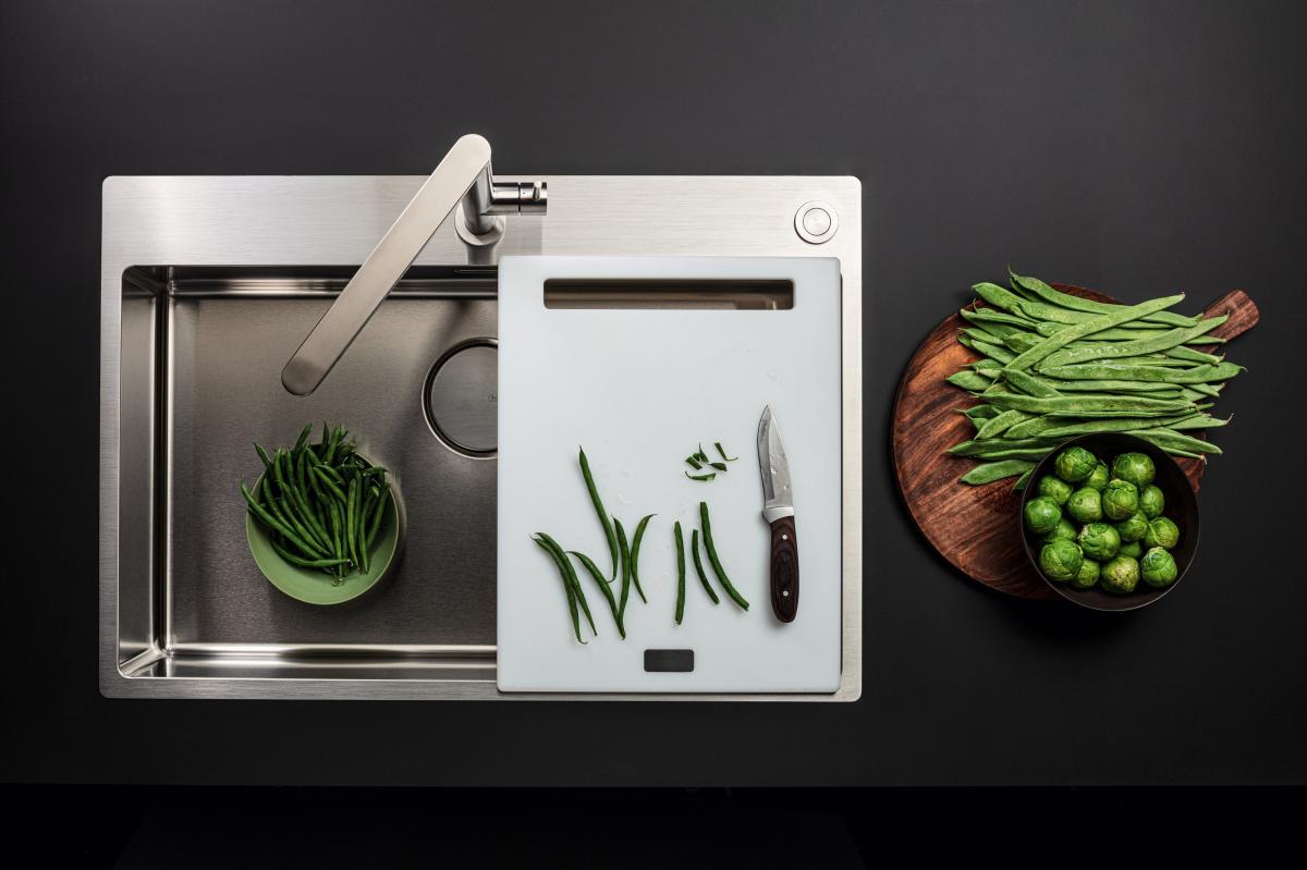 Disponibile în diferite dimensiuni pentru a se potrivi cu ușurință în orice mediu de bucătărie, ele sunt evidentiate de inovatoarea supapa lor integrată  pentru drenarea lichidelor, amplasate convenabil pe marginea chiuvetei, și, de asemenea, pentru sistemul de drenaj Falmec exclusiv .