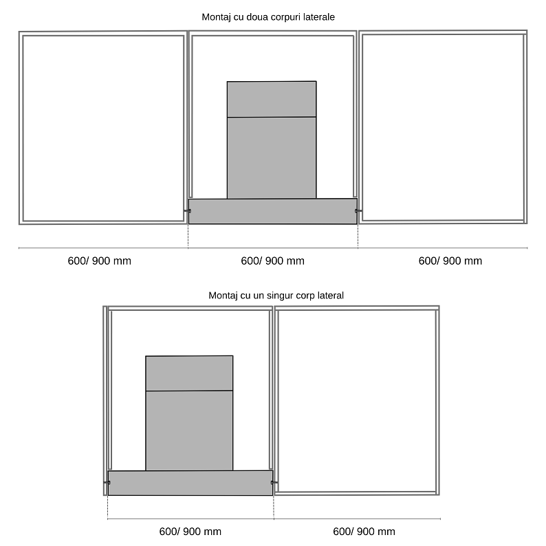 | Distanta minima fata de blatul de lucru (mm) | 50 cm (plita inductie), 65 cm (plita gaz) |
