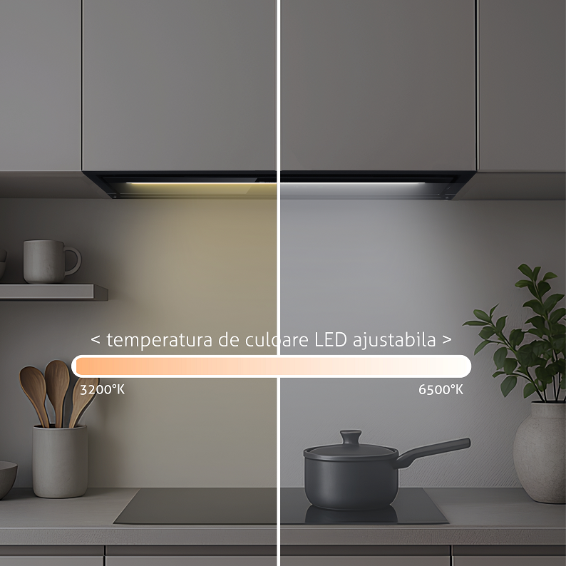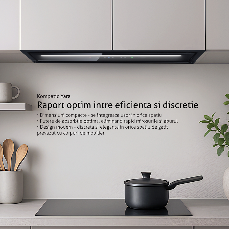 oferind o solutie eficienta pentru eliminarea aburului, a mirosurilor si a grasimilor, mentinand in acelasi timp confortul si estetica bucatariei.