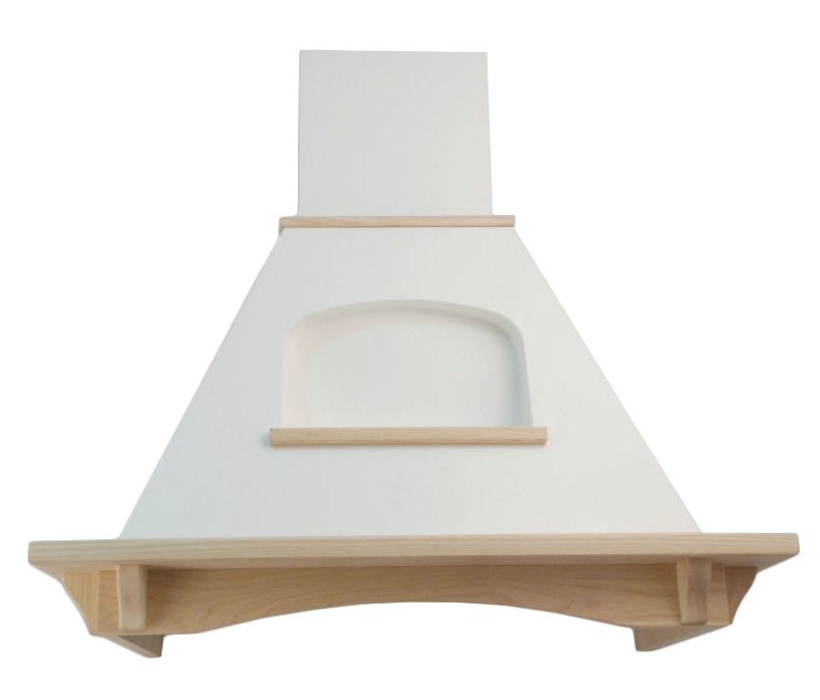 - Materialul din care este confectionata este otel de inalta calitate, vopsit in culoarea alb, iar marginea din partea inferioara a hotei este din lemn natur.