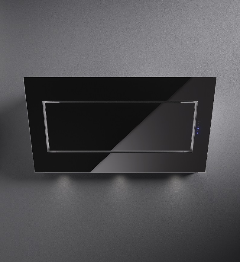 Hota de perete FALMEC QUASAR L=120 cm,800mc/h, Clasa de energie A, Sticla de culoare neagra, Garantie 5 ani, Aspiratie perimetrala, Fabricatie Italia, Functia 24h, Control Touch