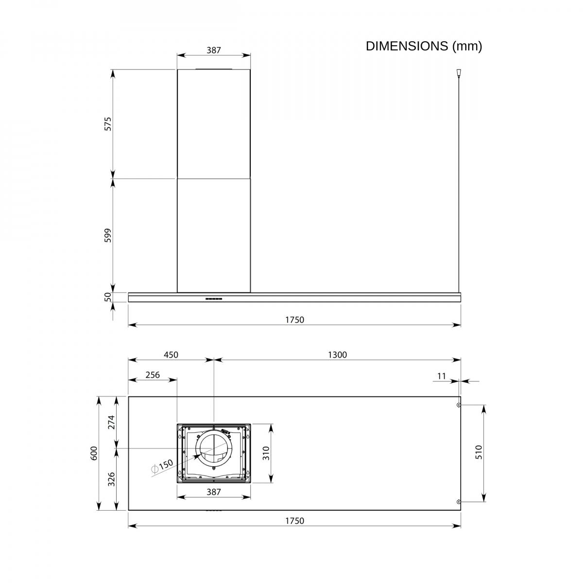 Hota Insula cu sistem NRS de reducere a zgomotului FALMEC LUMEN ISOLA 175 cm, versiune dreapta, Debit de aer 800mc/h, Fabricatie Italia, Aspiratie perimetrala ,Garantie 5 ani