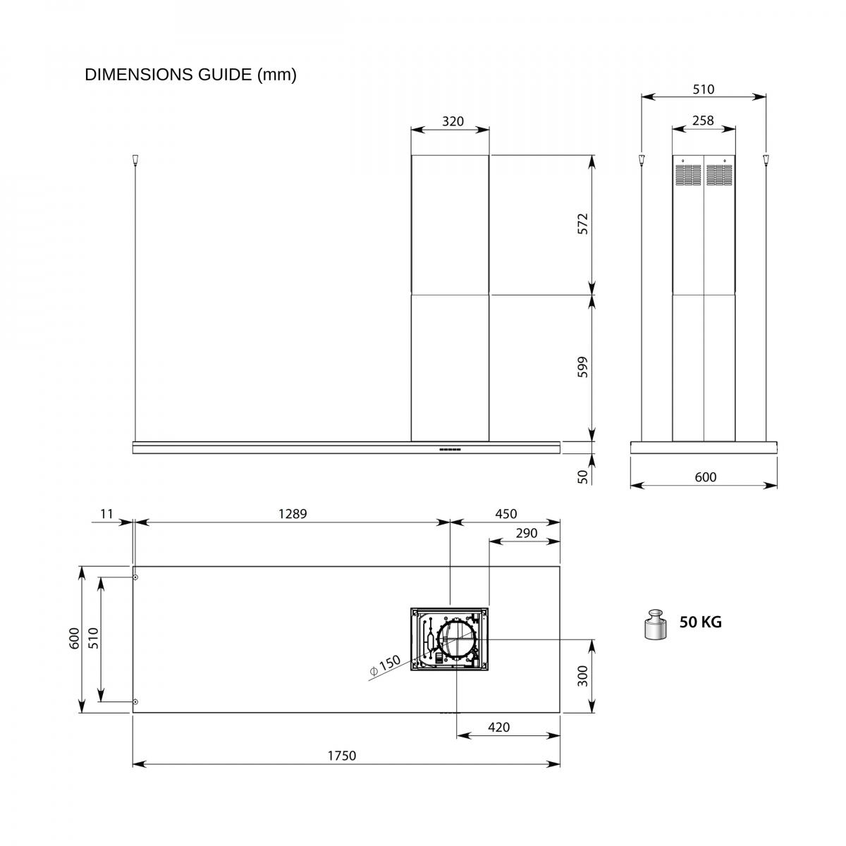 Hota Insula FALMEC LUMEN ISOLA 175 cm, versiune dreapta, Debit de aer 800mc/h, Fabricatie Italia, Aspiratie perimetrala ,Garantie 5 ani