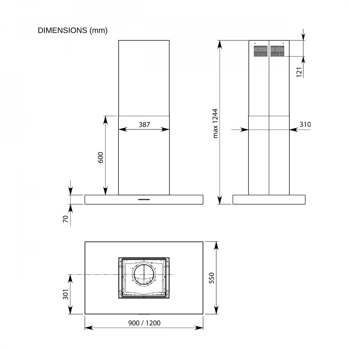 Hota Insula FALMEC PLANE PLUS NRS L=90 cm, cu Sistem de Reducere a Zgomotului, Culoare Neagra, Motor 800 mc/h, Sistem de comunicare wireless intre plita si hota Falmec, Aspiratie perimetrala, Iluminare LED dimabila si Dynamic Control electronic
