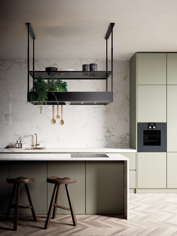 Hota insula Falmec Spazio 130 redefinește conceptul de hotă pentru bucătărie prin îmbinarea designului contemporan cu funcționalitatea practică. Structura suspendată include rafturi elegante din sticlă fumurie și iluminare LED integrată, oferind spațiu suplimentar pentru depozitarea ustensilelor sau a ingredientelor. Sistemul de filtrare Circle.Tech cu filtru regenerabil Carbon.Zeo captează eficient mirosurile și vaporii, fiind optimizat pentru funcționare în mod recirculare. Motorul performant și controlul electronic cu telecomandă asigură utilizare intuitivă și eficientă. În plus, hota integrează prize electrice și porturi USB, utile pentru aparate sau dispozitive de bucătărie. Prin designul său multifuncțional, Falmec Spazio 130 devine un punct central elegant în orice bucătărie modernă.