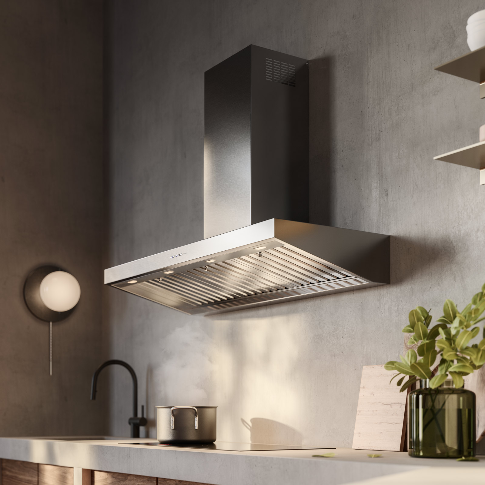 Hota de perete Falmec Marte Pro îmbină un design curat, cu inspirație industrială, cu un sistem puternic de extracție, ascunzând un motor de înaltă performanță și filtre profesionale baffle din oțel inoxidabil. Iluminarea LED dinamică, cu intensitate reglabilă, îmbunătățește vizibilitatea în timpul gătitului și se adaptează atmosferei din bucătărie. Construită din oțel inoxidabil premium AISI 304, această hotă asigură o captare eficientă a grăsimilor și mirosurilor, potrivindu-se atât în bucătării moderne de acasă, cât și în spații cu stil profesional.