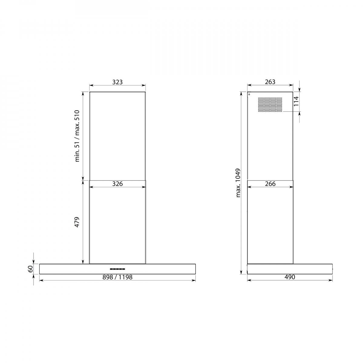 Evacuare verticala - Conexiunea la conducta de evacuare se face prin partea superioară a unității.