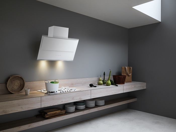 Hota de perete FALMEC VERSO NRS, Culoare alba, Noise reduction System, Nivel de zgomot maxim 54dB, L=85cm, 800mc/h, Iluminare LED Dynamic si Dimabil, Garantie 5 ani, Touch Control, Functie 24 h, LED, Fabricatie Italia, Dubla aspiratie