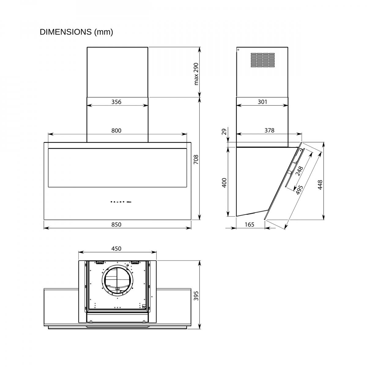 Hota de perete FALMEC VERSO NRS, Culoare neagra, Noise reduction System, Nivel de zgomot maxim 54dB, L=85cm, Motor 800mc/h, Iluminare LED Dynamic si Dimabil, Garantie 5 ani, Touch Control, Functie 24 h, Fabricatie Italia, Dubla aspiratie