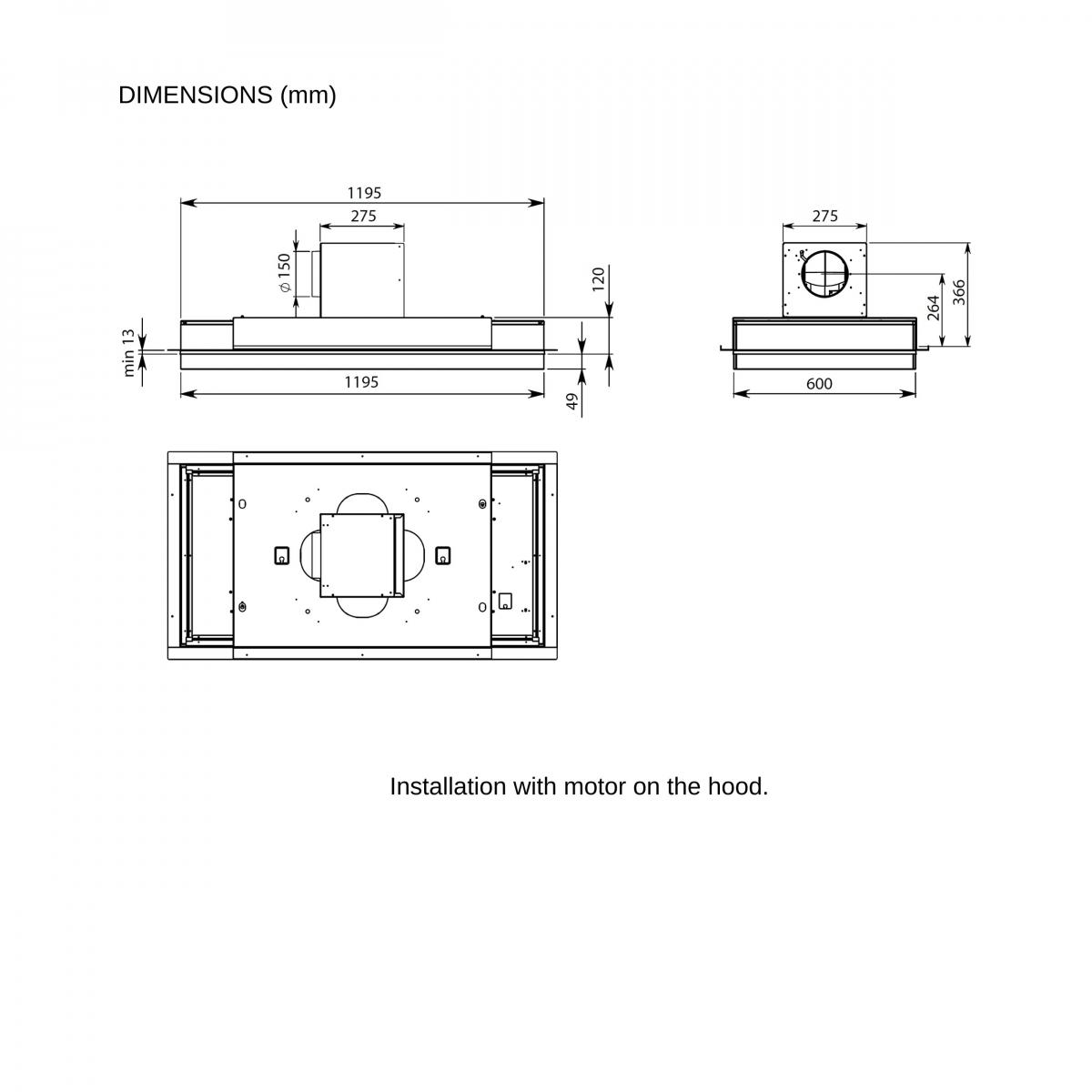 Hota de plafon FALMEC Alba, Design Collection, L=120cm, Fara motor, Telecomandă inclusă, Aspiratie perimetrala, Iluminat perimetral cu LED-uri, Telecomanda, Dialogue system, Fabricatie Italia, Garantie 5 ani