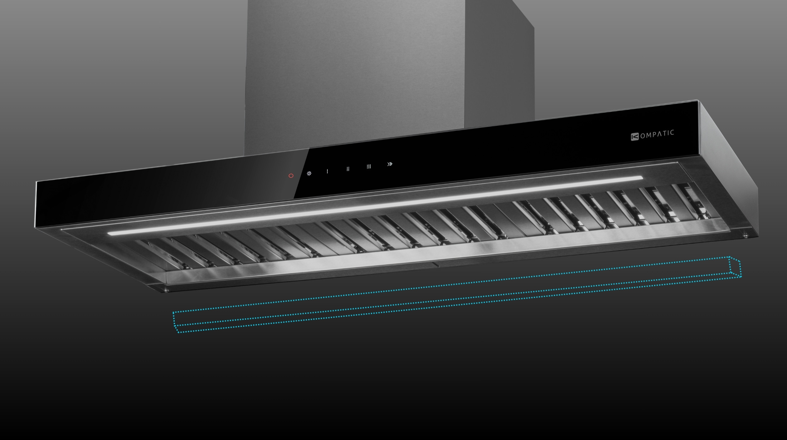 Discretă, puternică și ușor de integrat – această hotă slim se montează direct sub corpul suspendat, economisind spațiu fără a face compromisuri la performanță.