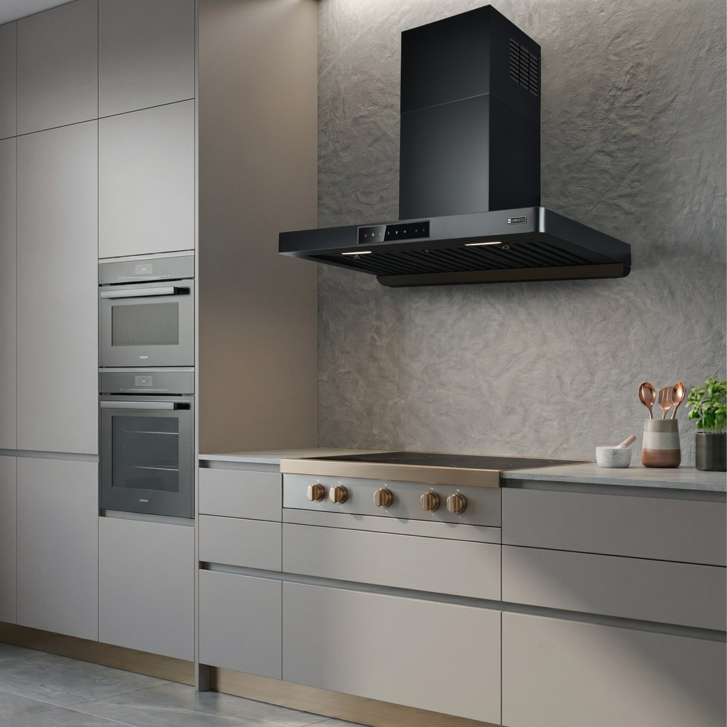 Hota de perete Kompatic by Turbionaire, KTE90WPB vopsita in negru mat, este conceputa pentru utilizarea intensa in bucatarie si este dotata cu functii avansate pentru sporirea confortului in utilizare. Elementele constructive inspirate din gama profesionala, asigura o eficienta ridicata in evacuarea aburului, mirosurilor si retinerea grasimilor rezultate in urma procesului de gatire.