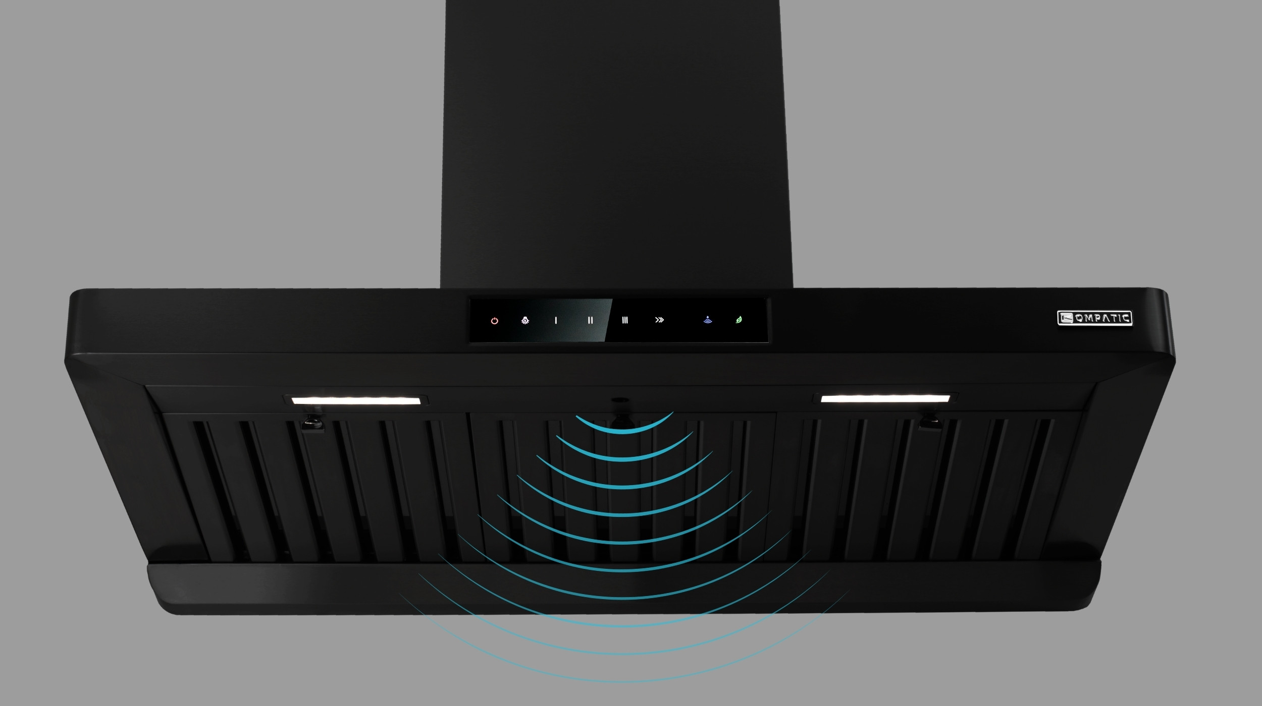 Hota de perete Kompatic by Turbionaire KTE90WPB, Motor 800 mc/h, Clasa A++, Functionare automata, Senzor monitorizare temperatura, Functie curatare aer, Iluminare LED, 3 viteze, Boost si Super Boost, 90 cm, Negru