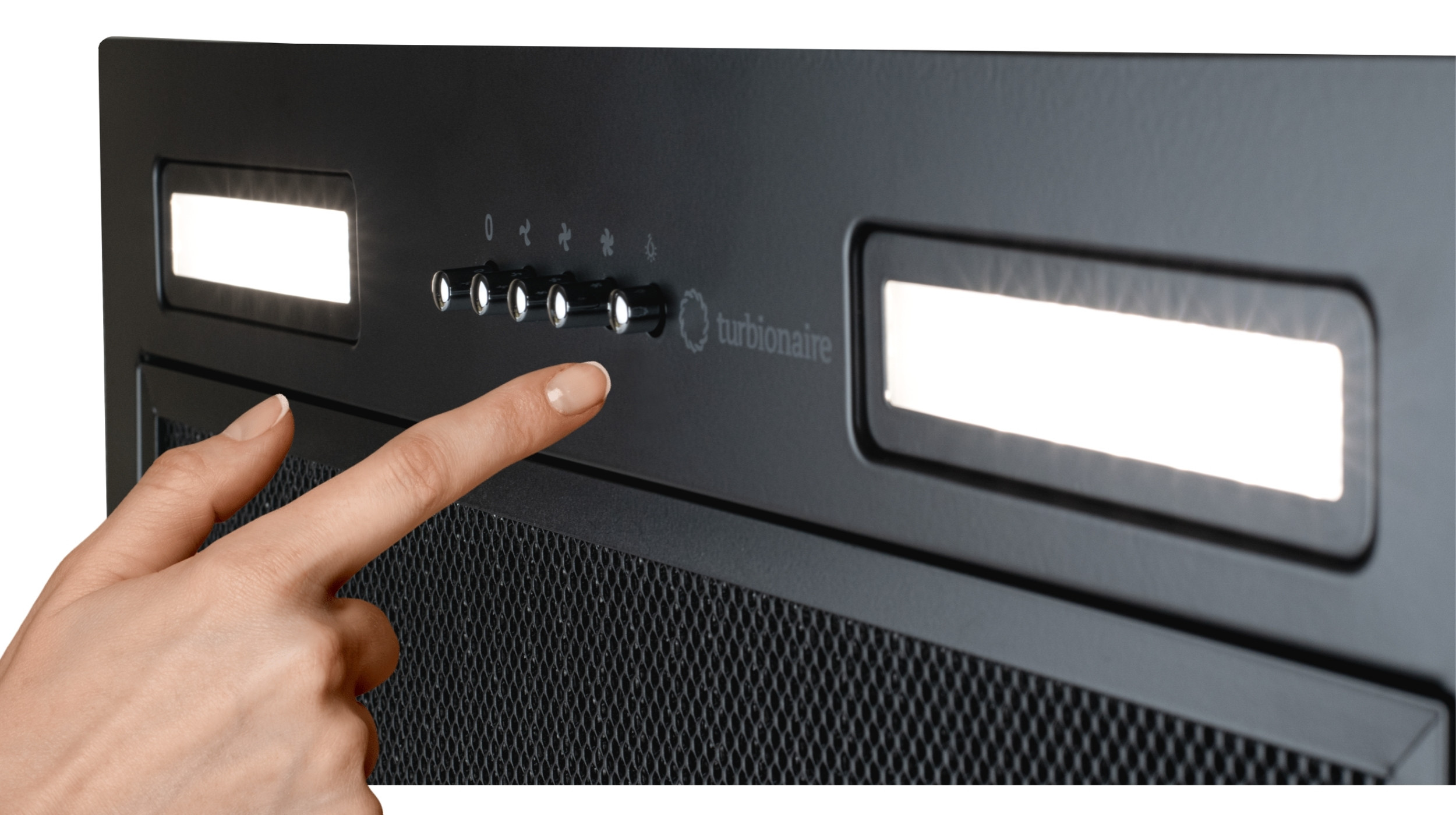 Hota incastrabila Turbionaire Luna 50 Black poate fi instalata in interiorul corpului de bucatarie suspendat, fara a interfera cu designul mobilierului, asigurand o instalare liniara, fiind