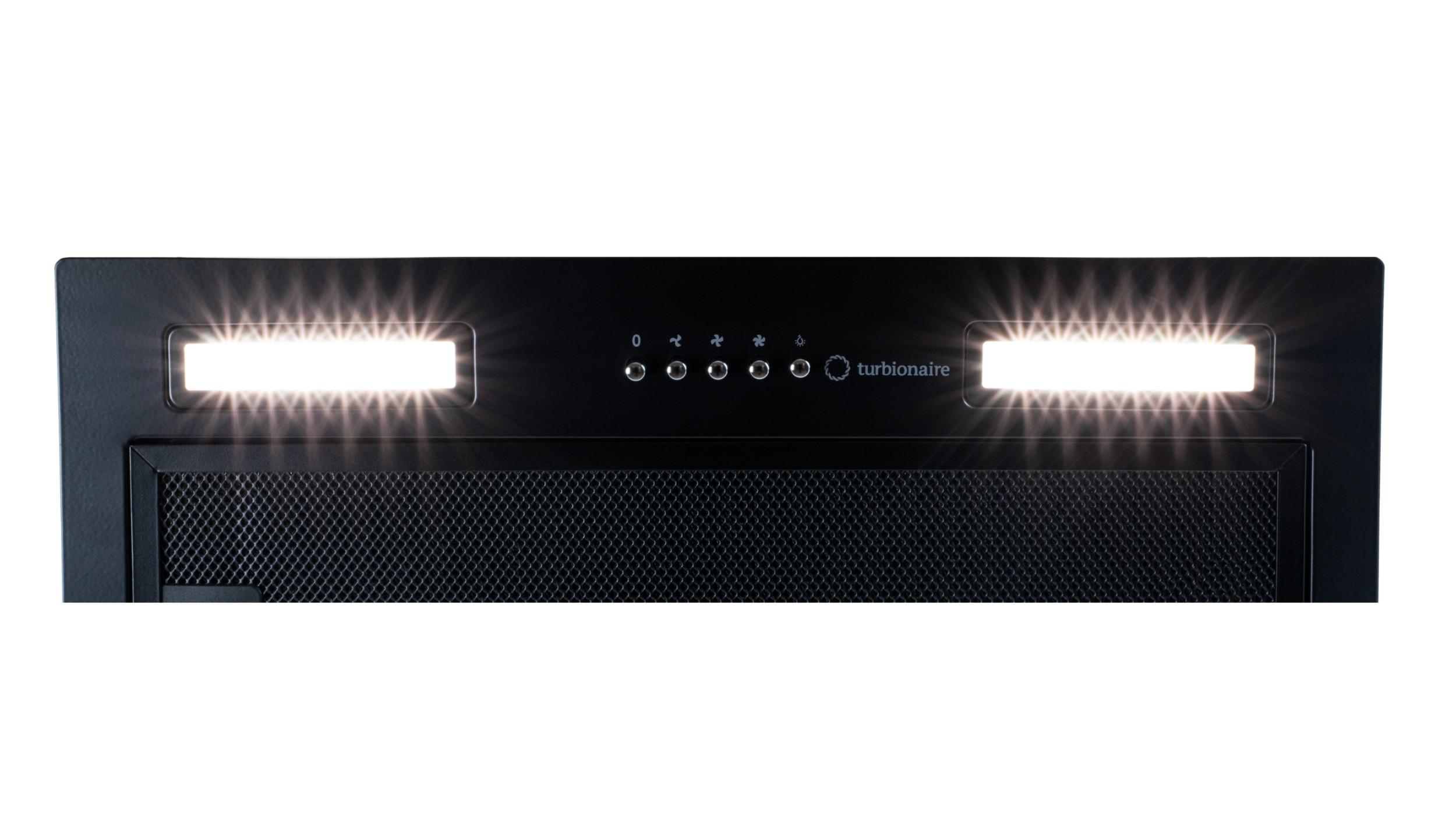 Hota incorporabila Turbionaire Luna 50 Black, Motor 460 mc/h, Iluminare LED 4000K, 3 viteze, Filtru grasimi din aluminiu negru in 5 straturi