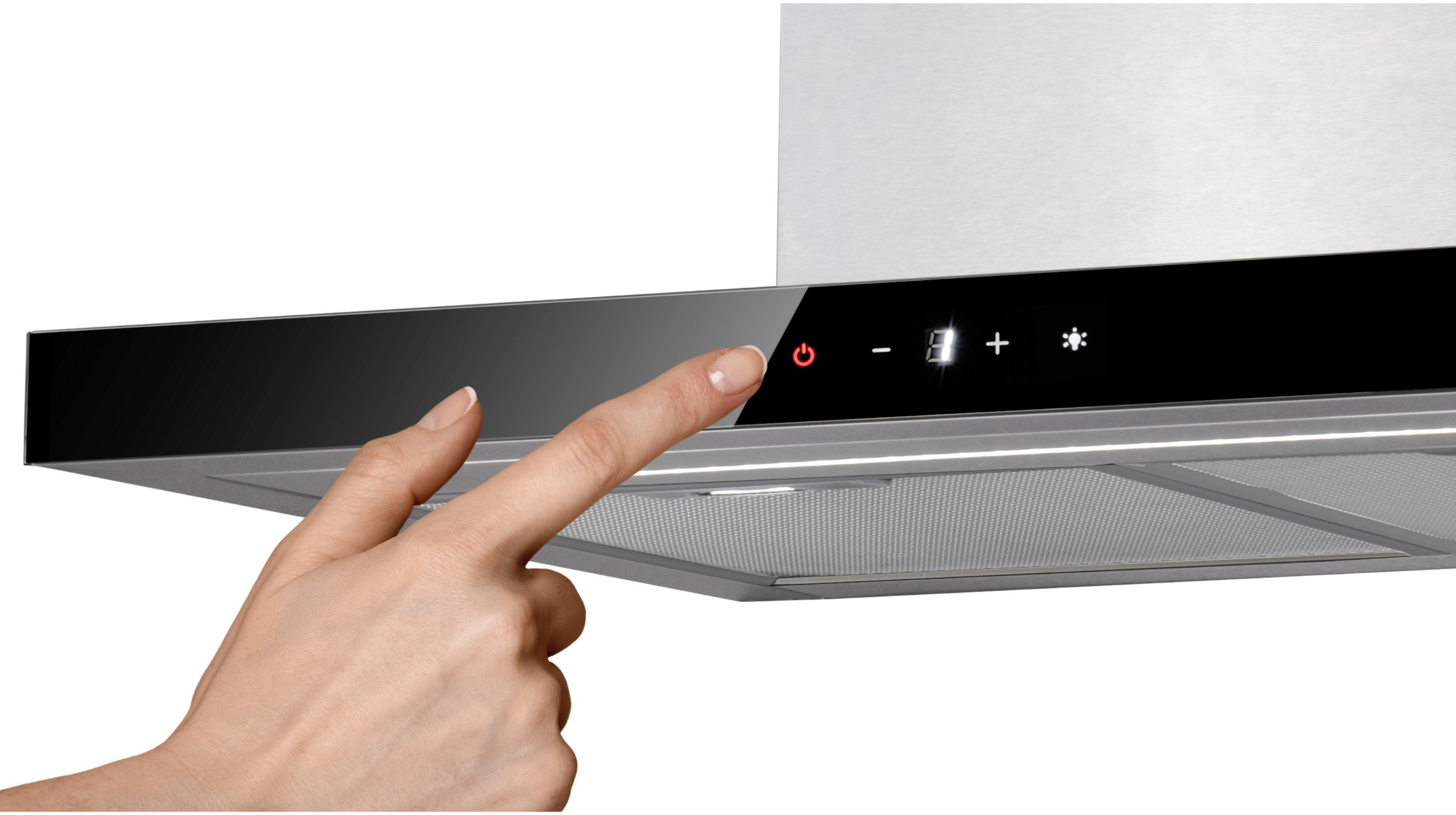 Hota de perete Turbionaire Ama 60 SS TMA60WS, Motor 800 mc/h, Clasa A++, Motor brushless, Inox, Control Touch, Iluminare LED 4000K, 3 viteze + Boost