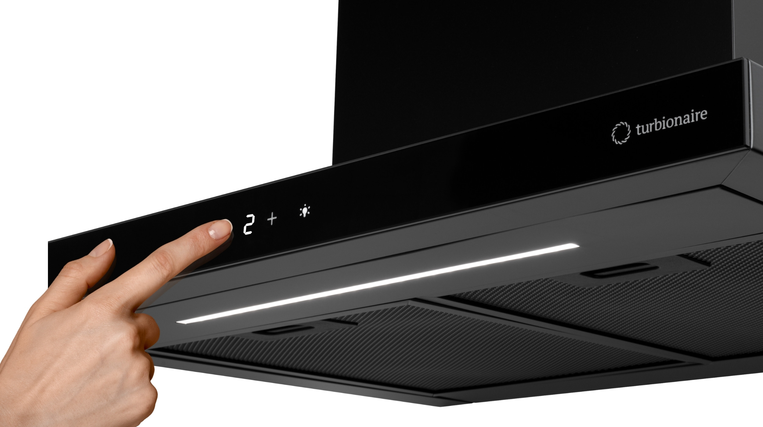 Hota de perete Turbionaire Ama 60 Wall Black, Motor 800 mc/h, Clasa A++, Motor brushless, Finisaj Negru mat, Control Touch, Iluminare LED 4000K, 3 viteze + Boost