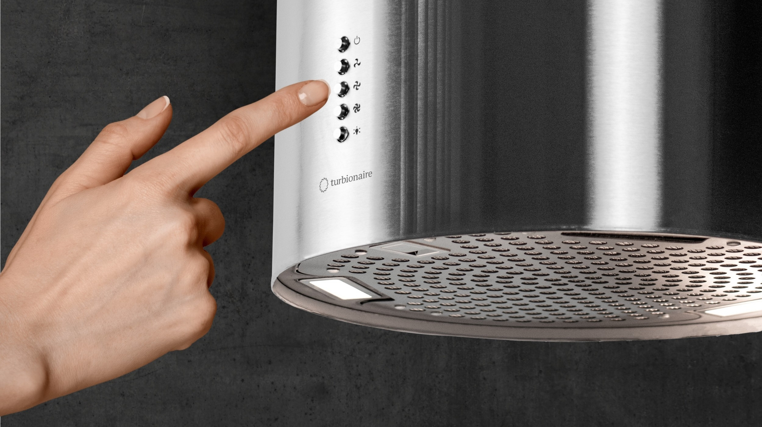 Hota de perete Turbionaire Dot 35 Wall, Motor brushless 800 mc/h, Clasa A++, Control electronic, Iluminare LED 4000K, 3 viteze + Boost, Filtru Aluminiu in 5 straturi, Design minimalist, Inox