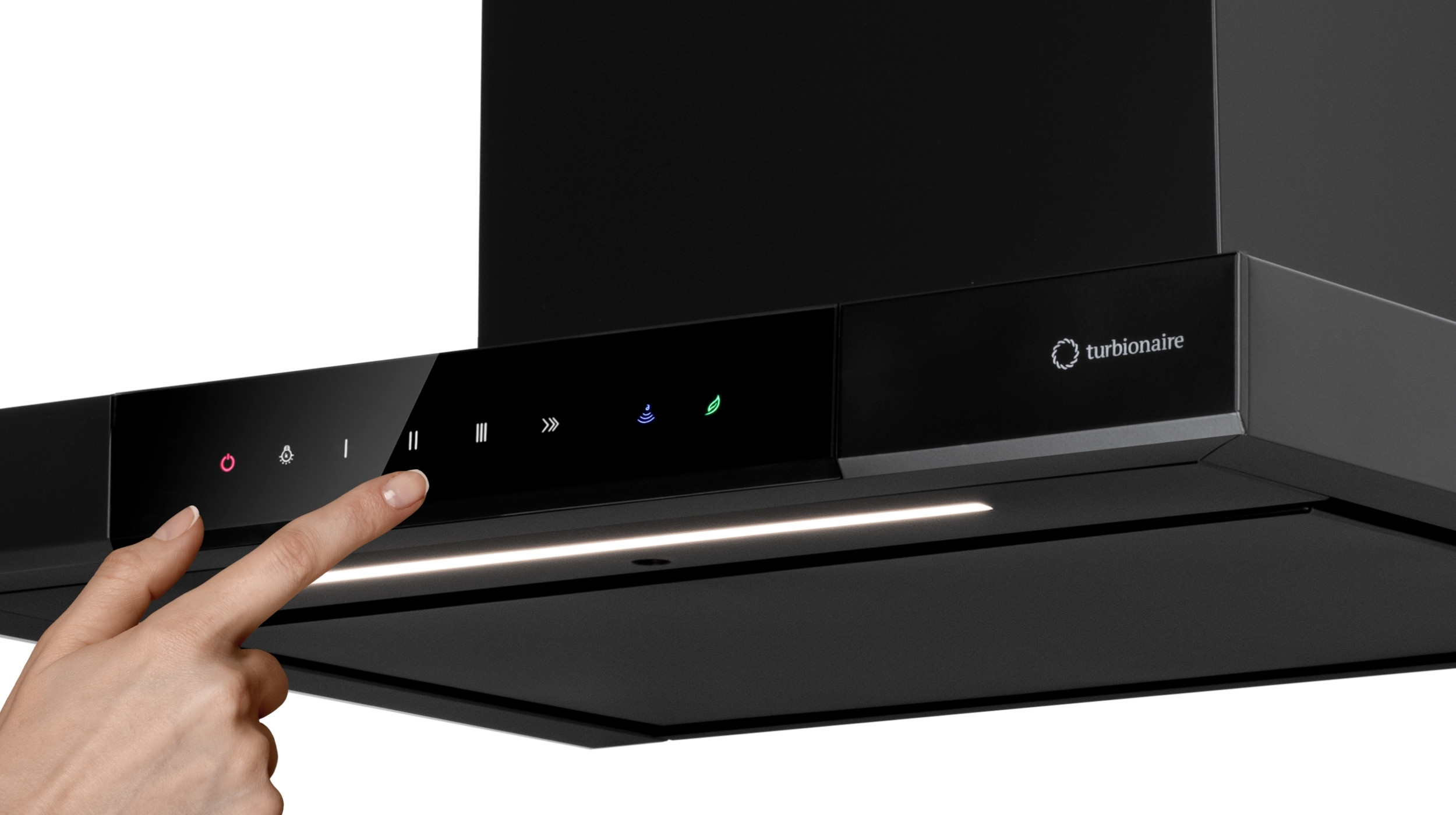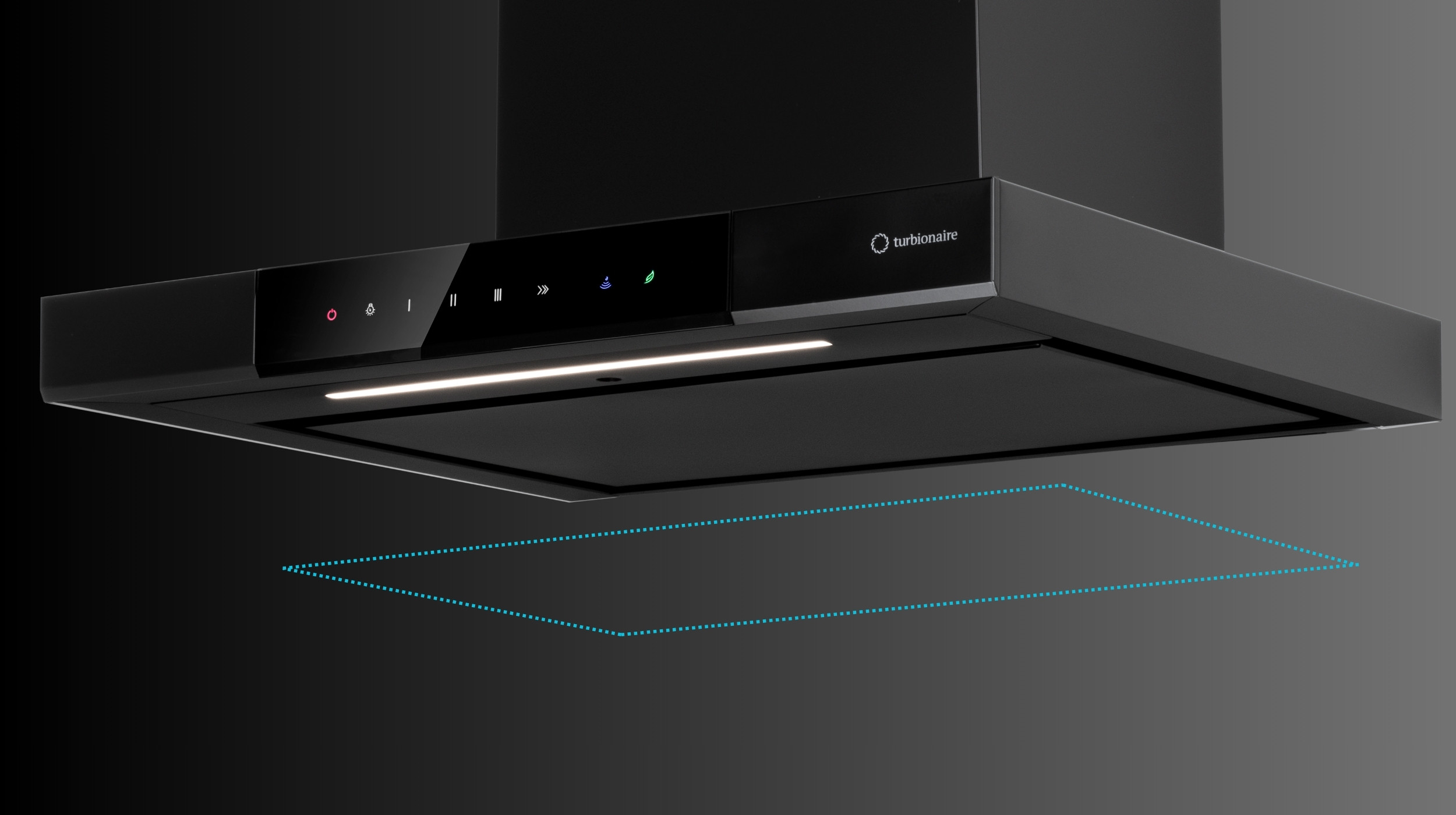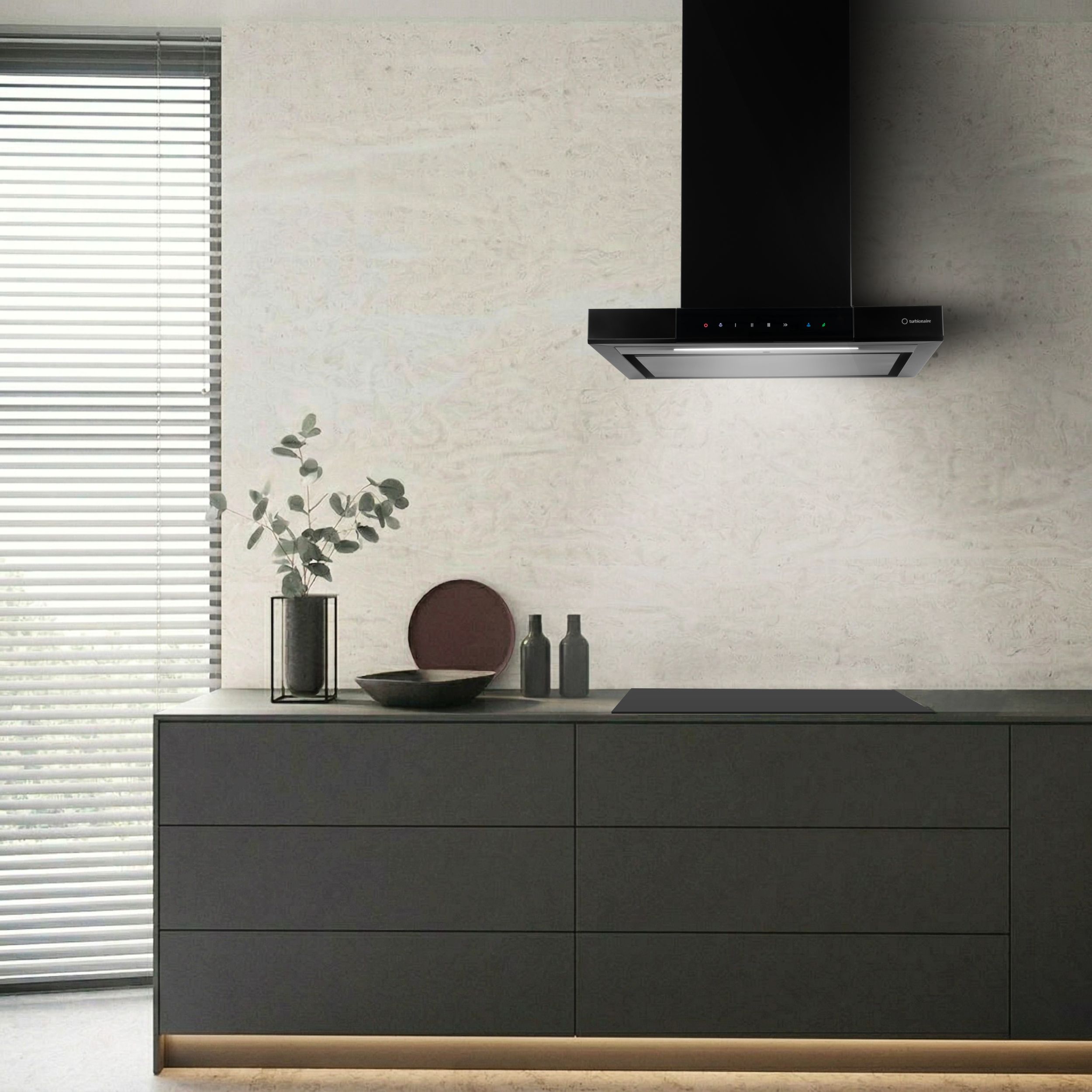 Hota de perete Turbionaire Elva 60 TEV60WB, Motor Brushless 800 mc/h, Clasa A++, Functionare automata, Senzor monitorizare temperatura, Functie curatare aer, LED-uri ajustabile, 3 viteze, Boost si Super boost, Aspiratie perimetrala, 60 cm, neagra