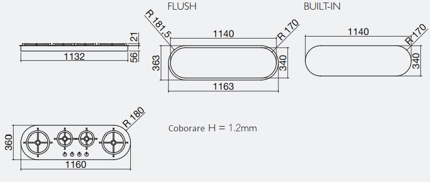 Plita cu 3 arzatoare pe gaz si 1 tripla coroana BARAZZA Tao 1PTA120 120 cm