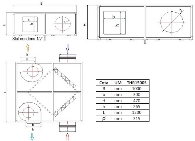 Recuperatorul de caldura Turbionaire este static cu flux incrucisat, fabricat din aluminiu. Este prevazut cu o tava de colectare a condensului.