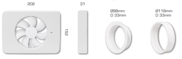 - ventilatorul este dotat cu 2 adaptoare pentru tubulatura: 1xD=98 mm si 1xD=118 mm