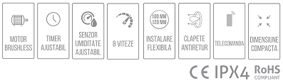 Ideal pentru bai, bucatarii, spalatorii, holuri tehnice etc. sau orice incapere care necesita ventilatie continua sau controlata.