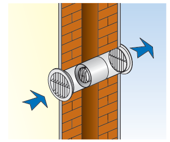 - Instalare încastrată în perete sau tavan pentru extragerea sau introducerea aerului în incintă