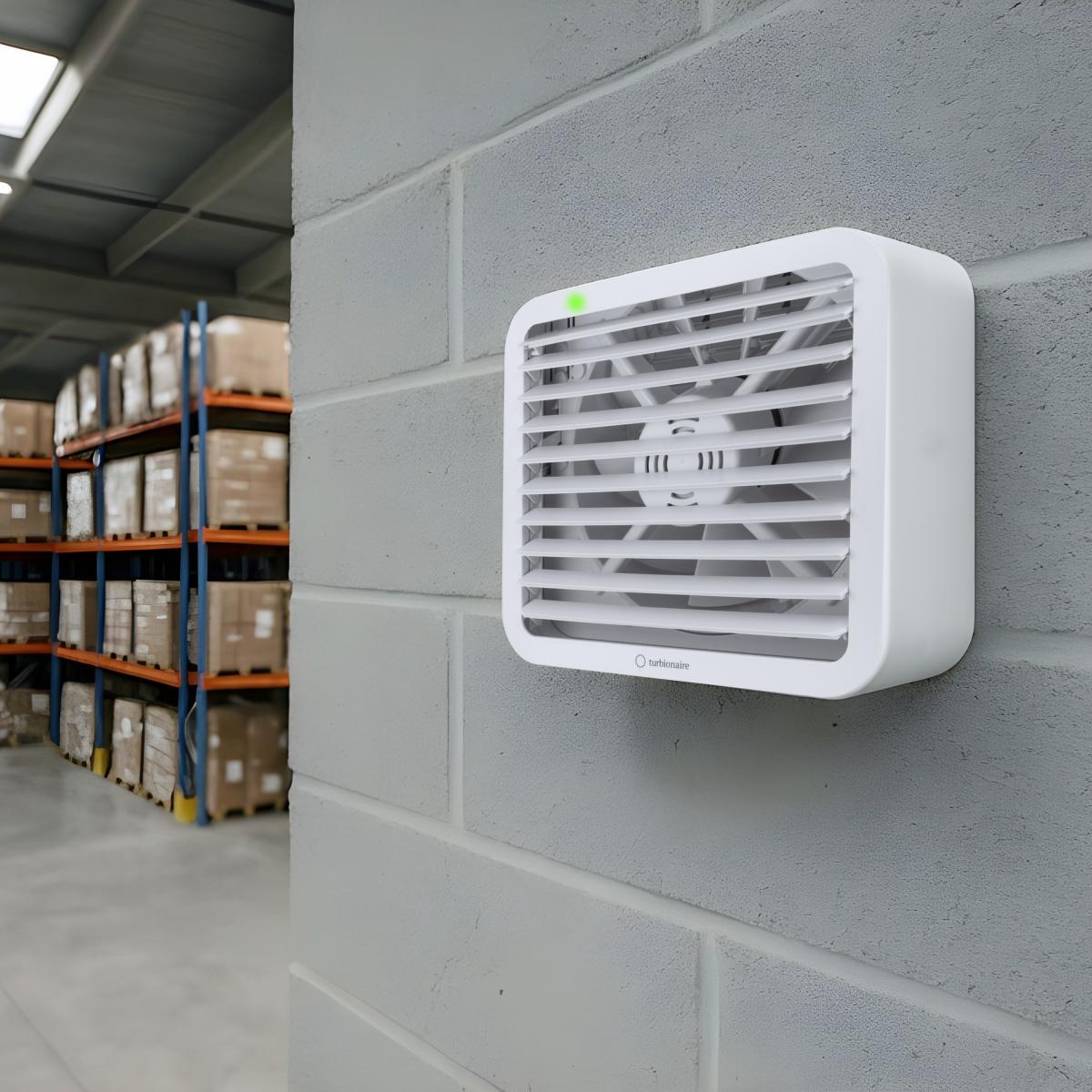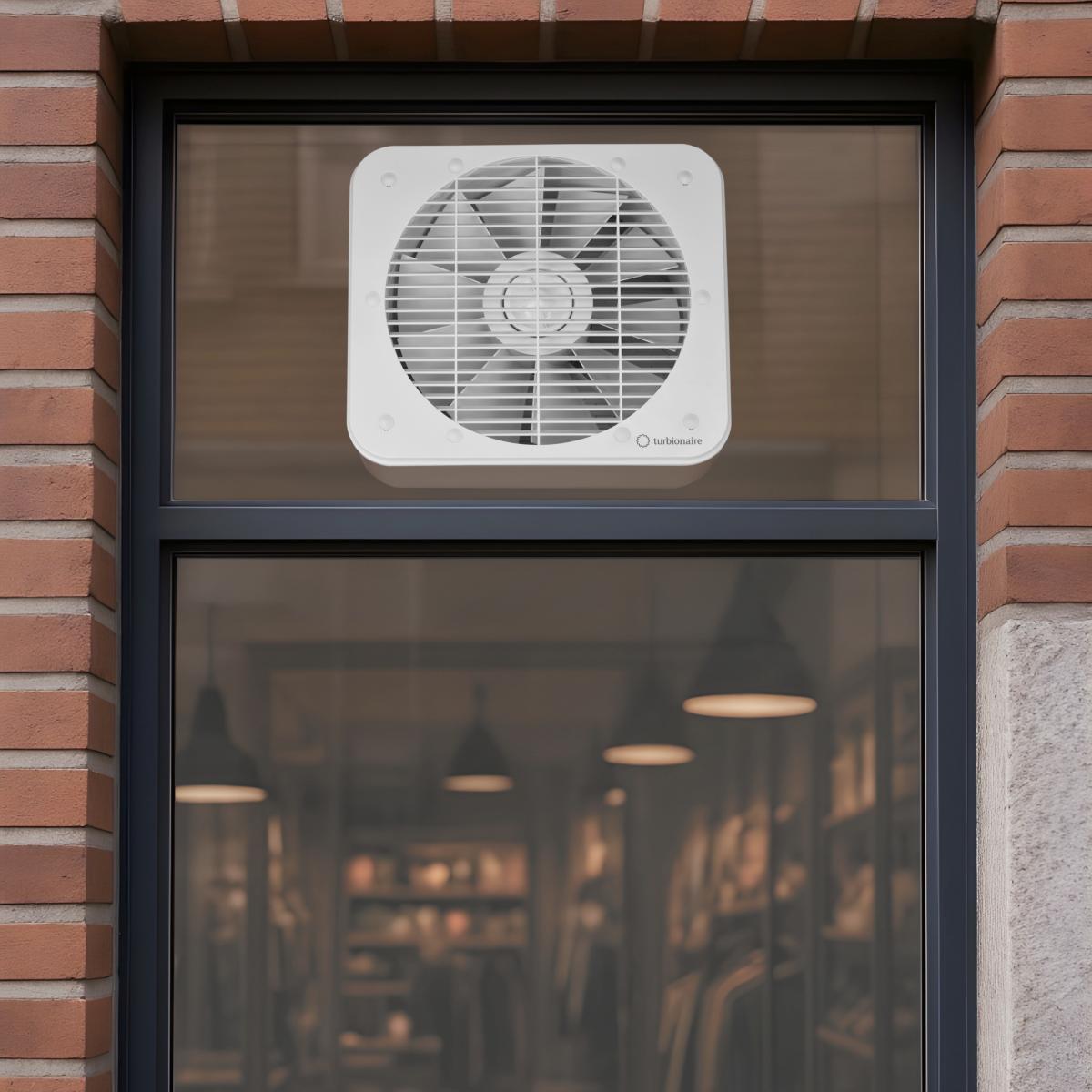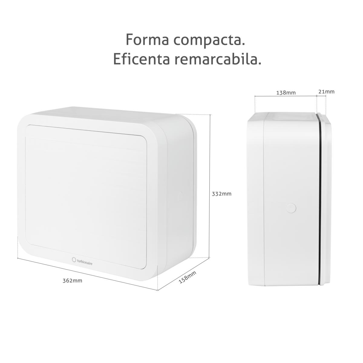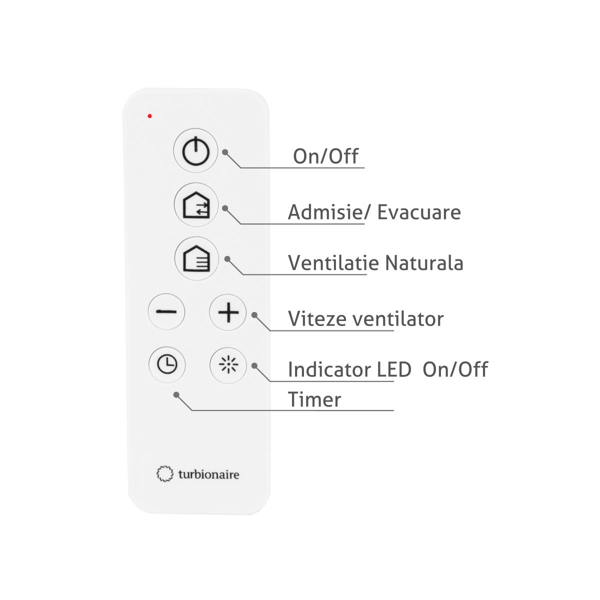 Ventilator reversibil Turbionaire FLEX 300 RVS TF300ARR, montaj fererestra/perete, Telecomanda, Timer ajustabil, Jaluzele automate, 6 viteze, Debit aer 800 mc/h - evacuare si 632 mc/h - aspiratie, Functie Ventilatie Naturala, indicator LED, alb mat