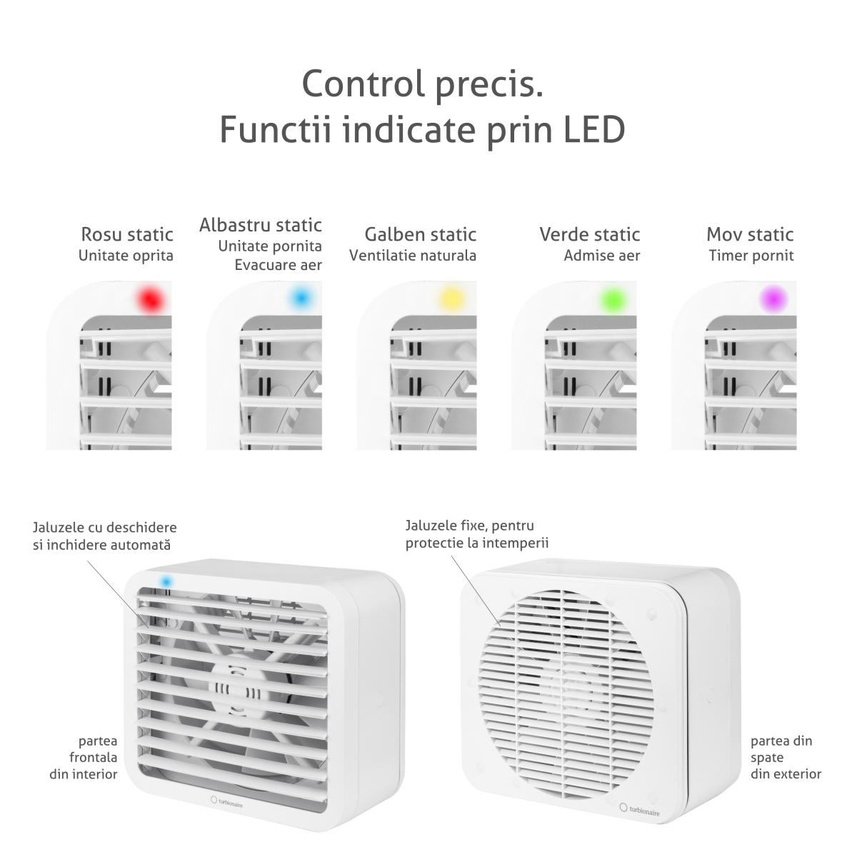 Se poate monta pe perete sau pe fereastra, oferind eficienta si performanta in utilizarea de zi cu zi.