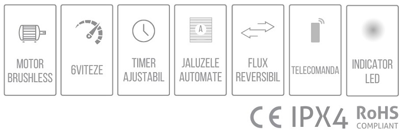 Ventilatorul asigura o circulatie puternica si uniforma a aerului, atat pentru admisia, cat si pentru evacuarea aerului.