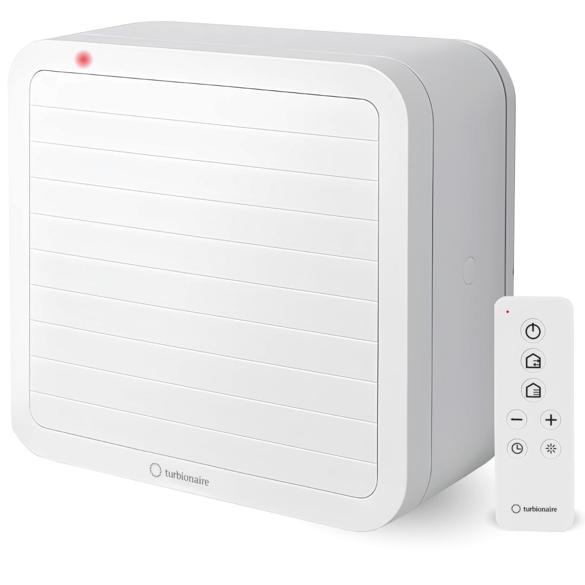 Ventilator reversibil Turbionaire FLEX 300 RVS TF300ARR, Telecomanda, Timer ajustabil, Jaluzele automate, 6 viteze, Debit aer 800 mc/h - evacuare si 632 mc/h - aspiratie, Functie Ventilatie Naturala, Indicator LED, Montaj fererestra/perete, Alb mat