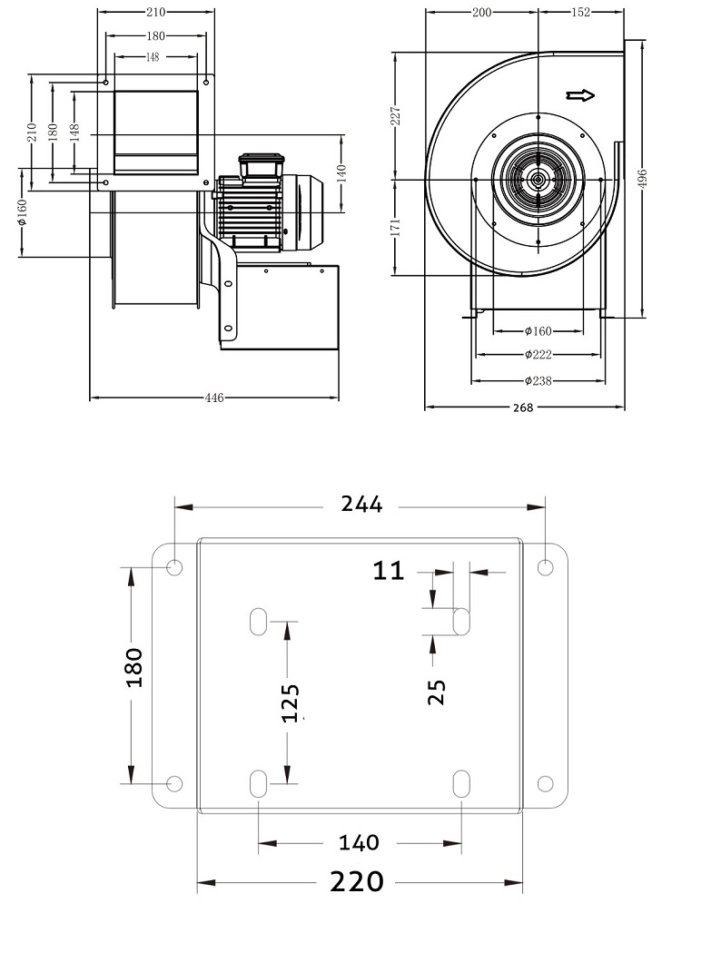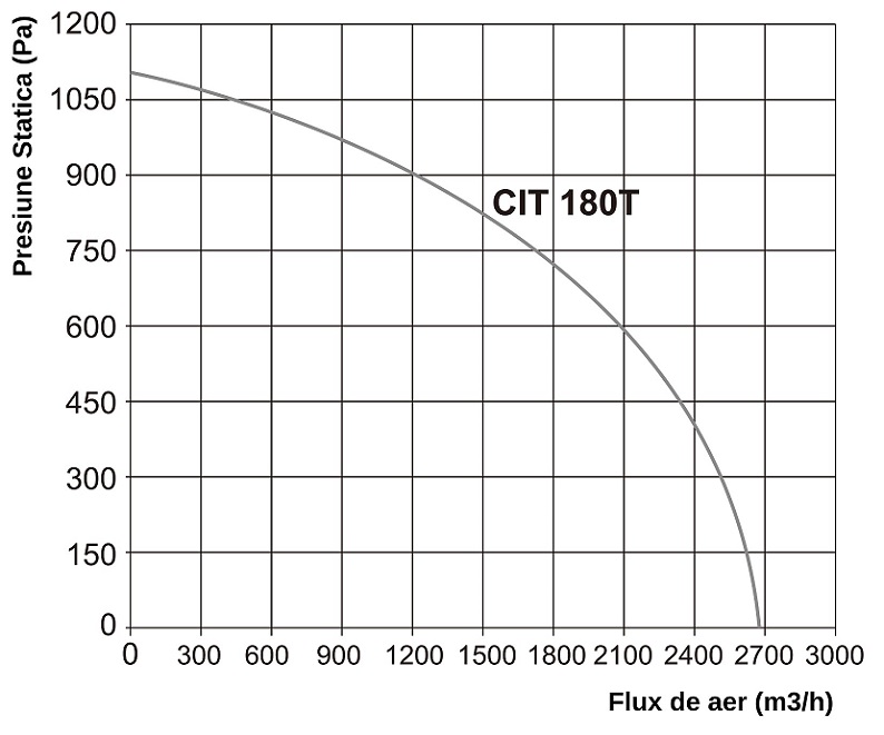 Ventilator centrifugal Turbionaire CIT 180T, Trifazic, Debit 2850 mc/h, IP 55, Motor Brushless, Presiune Max. 1110 Pa, Clasa F, 2 Poli
