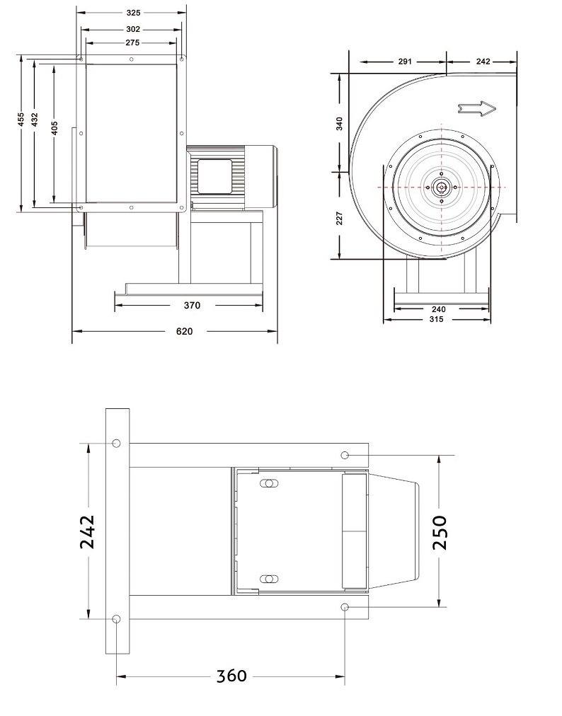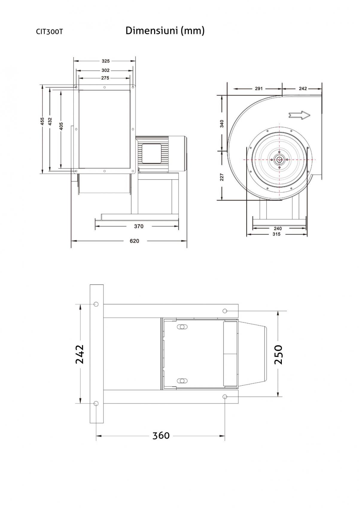 Ventilator centrifugal Turbionaire CIT 300T, Trifazic, Debit 8118 mc/h, IP 55, Motor Brushless, Presiune Max. 780 Pa, Clasa F, 4 Poli